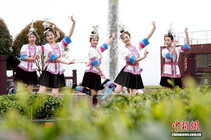 图为侗族密斯正在茶园舞蹈。吴练勋 摄