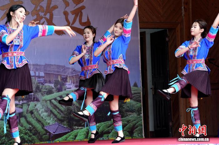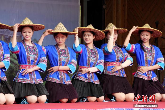 图为侗族小姐演出风气跳舞。吴练勋 摄