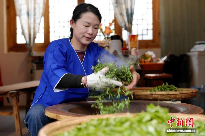 图为侗族小姐采戴秋茶。吴练勋 摄
