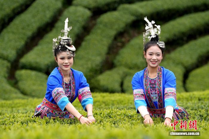 图为侗族女士正在茶园走秀。吴练勋 摄